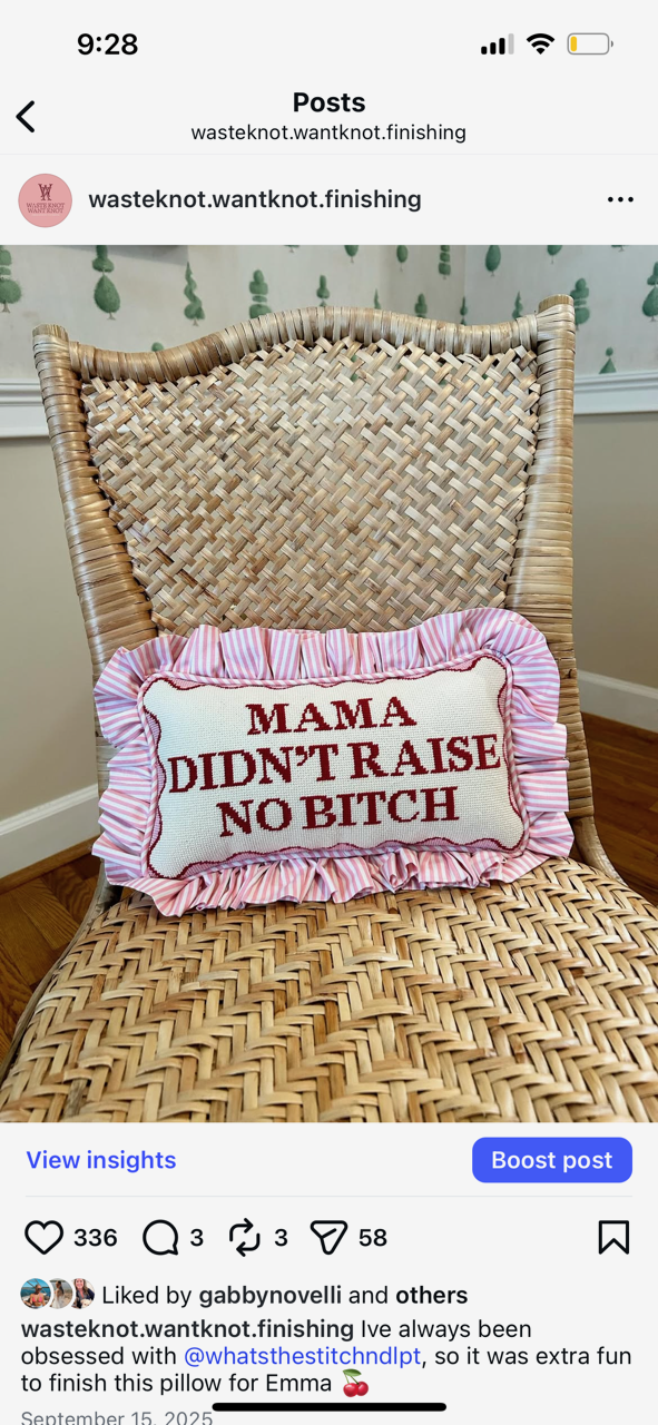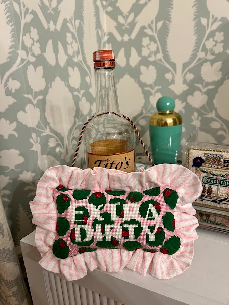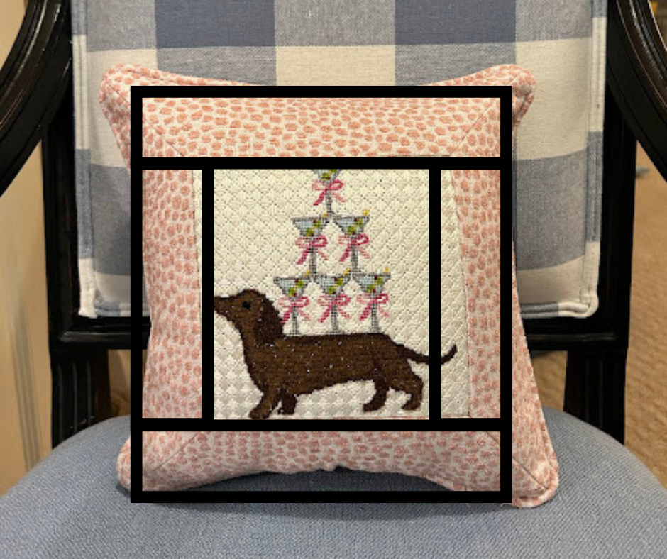 An inset is the fabric frame around the needlepoint canvas on a pillow.
