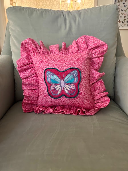 8x8" applique pillow with 2.5" ruffles