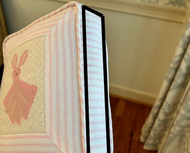 I typically add cording around the canvas to ensure no blank canvas or threads are showing.