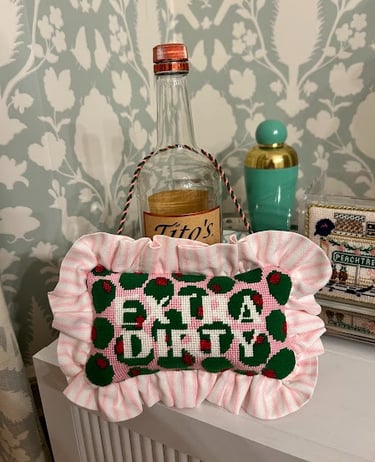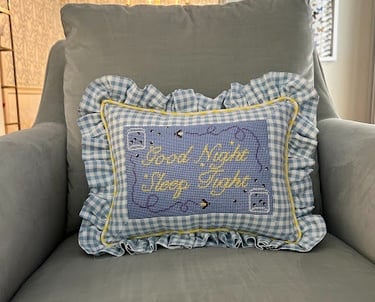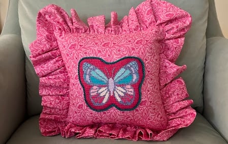 8x8" applique pillow with 2.5" ruffles