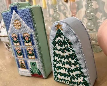 Ornaments are typically finished in the traditional style with 2 pieces of batting on the front, and 1 piece of batting on the back.