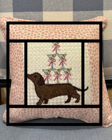 An inset is the fabric frame around the needlepoint canvas on a pillow.